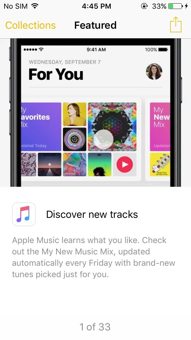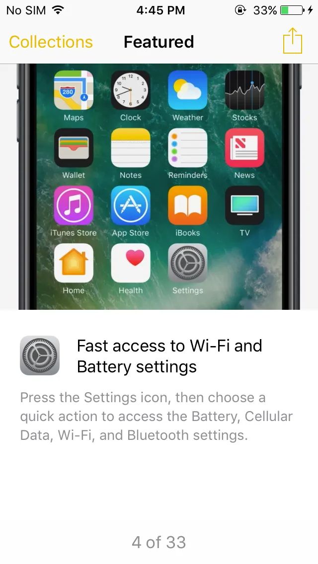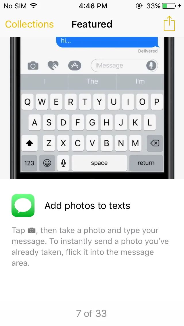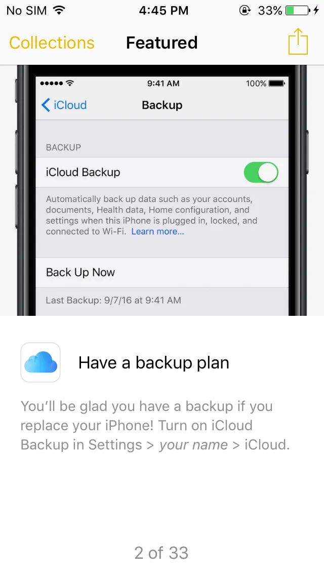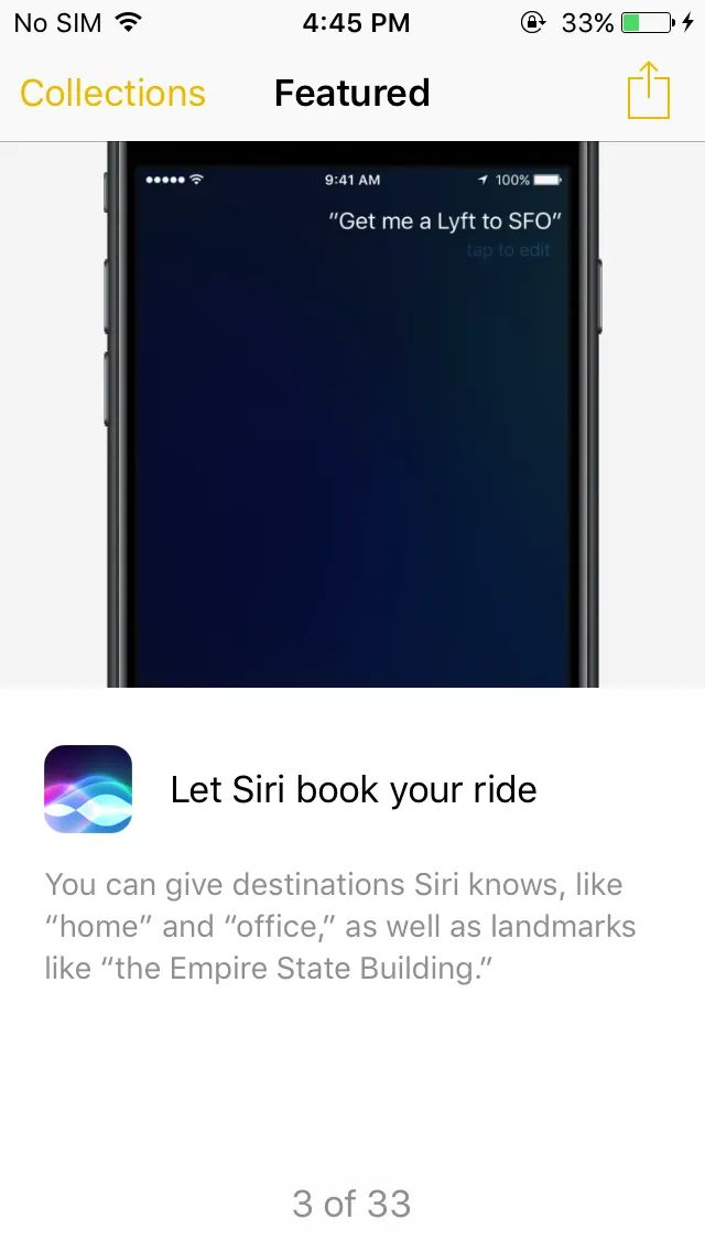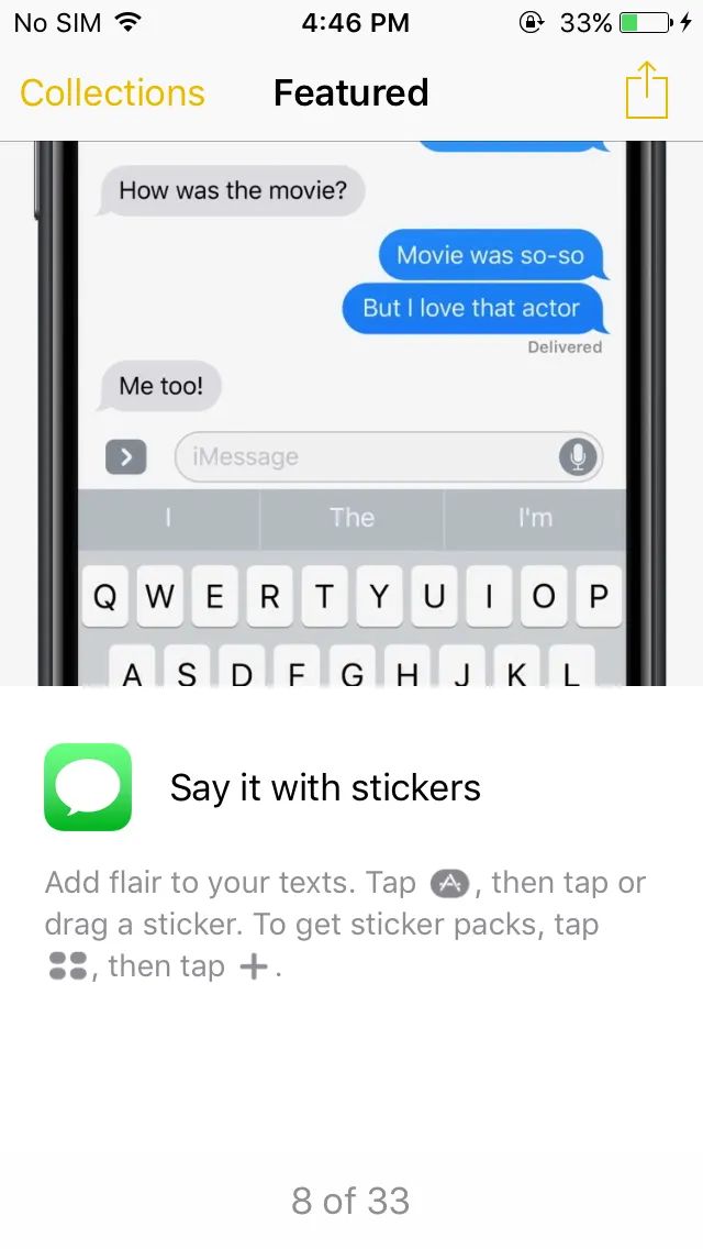 An app that lists features from the new operating system looks cute. It seems to me that Apple still haven’t learned how to explain new things without making you open a browser.